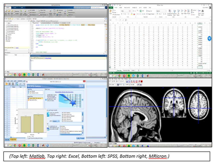I have been introduced to many different types of software that makes the tasks, data collection and data analysis possible. Matlab is a software that allows you to program the experimental tasks that the participants do in the scanner, it is also programmed to collect all the data from how they performed on the tasks such as accuracy and reaction time.